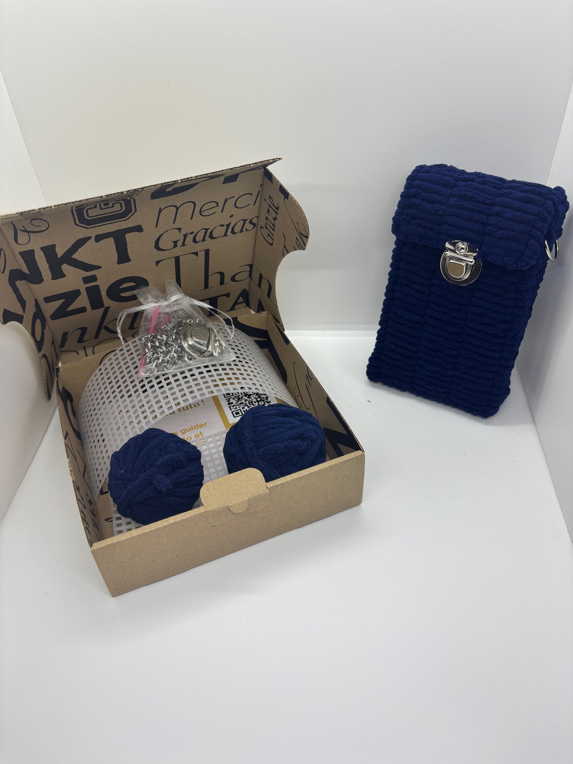 Kit DIY – Pochette Portable Bleu Foncé Chenille à Réaliser Soi-même