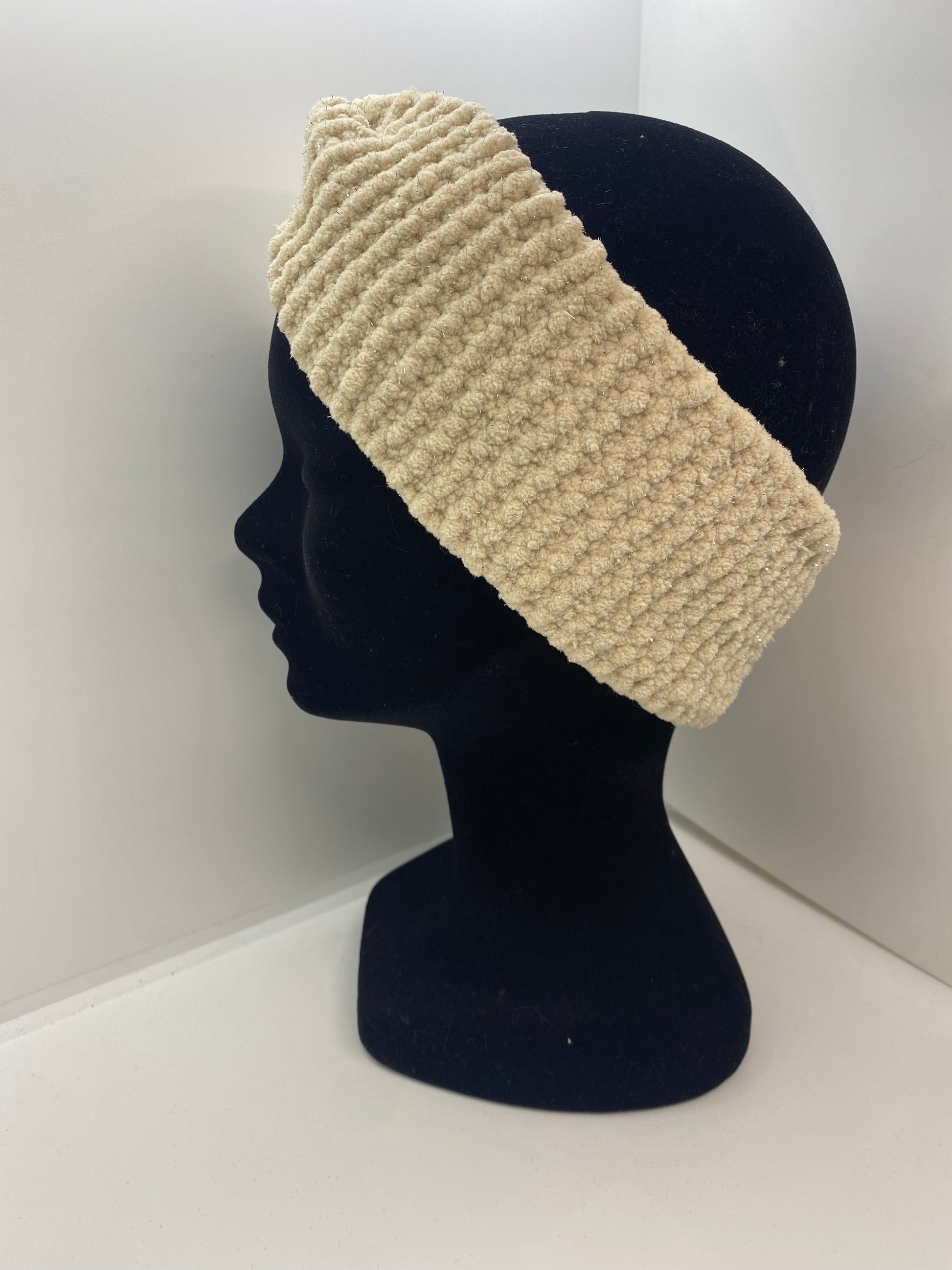 Apportez une touche de douceur et de brillance à vos looks avec ce tour de tête en laine effet chenille beige, délicatement orné de quelques paillettes discrètes. Réalisé à la main, ce modèle unique combine confort et élégance pour sublimer vos tenues tout en vous protégeant du froid. L'effet chenille apporte une texture agréable au toucher, tandis que les paillettes subtilement intégrées ajoutent un éclat délicat, parfait pour attirer la lumière sans excès.